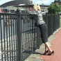 Crushing and squishing tomatoes and a banana outside with high heel stiletto shoes.