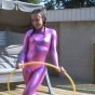 Hottie in tight spandex rubbing her hot pussy and showing her hot nipples