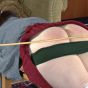 Blonde babe Chelsea Zinn leans over the sofa as she gets her ass slapped with a rule